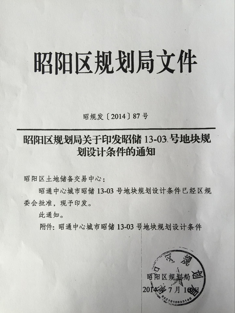 昭通中心城市13-03號國有建設(shè)用地使用權(quán)規(guī)劃條件
