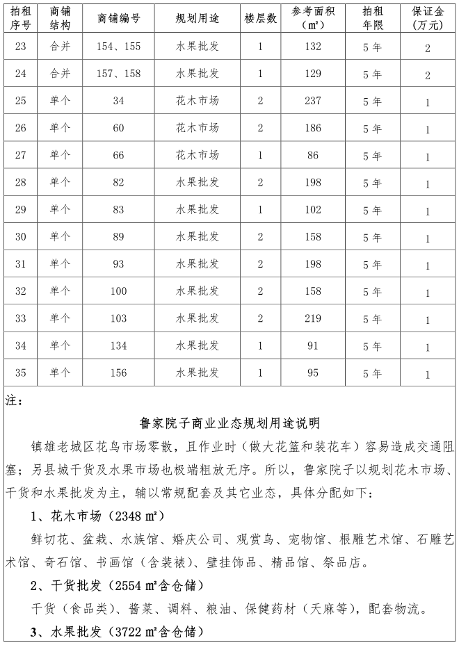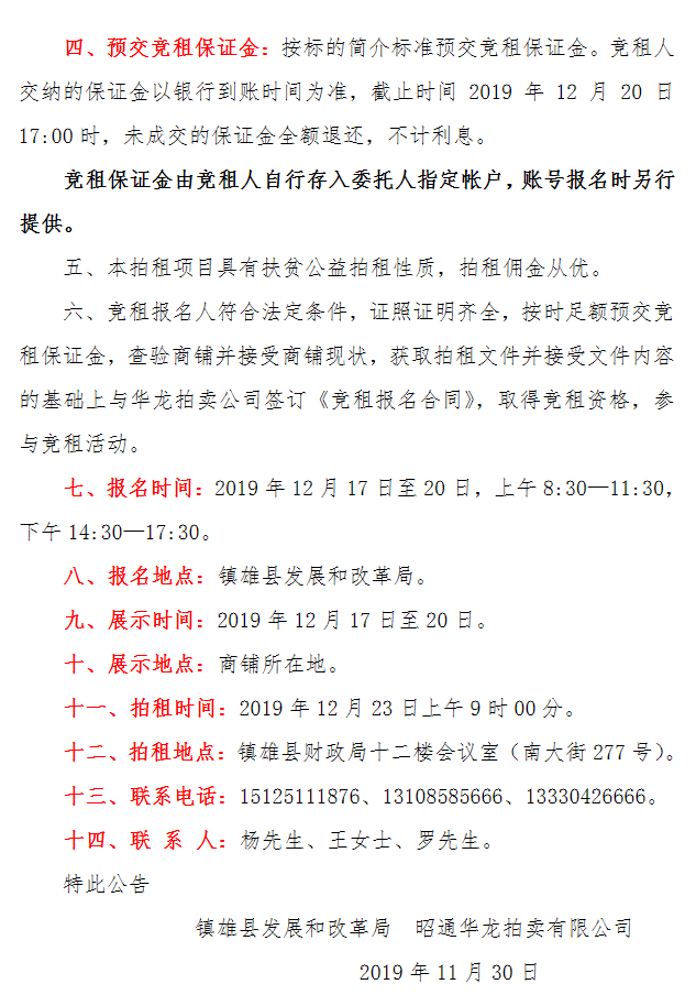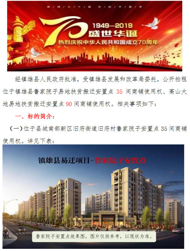 鎮(zhèn)雄縣魯家院子安置點商鋪使用權(quán)拍租公告
