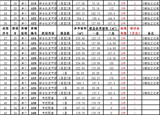 (三)拍租一層單個(gè)商鋪26 間,使用期5年,每間商鋪預(yù)交競(jìng)租保證金1萬(wàn)元, 詳見(jiàn)商鋪簡(jiǎn)介(欲競(jìng)租多間商鋪,保證金類推)。