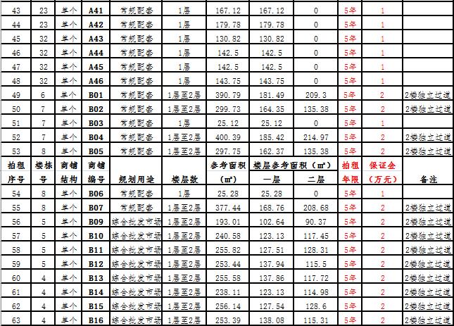 (二)拍租一層至二層合并為一個(gè)商鋪58 間,使用期5年,每間商鋪預(yù)交競(jìng)租保證金2萬(wàn)元, 詳見(jiàn)商鋪簡(jiǎn)介(欲競(jìng)租多間商鋪,保證金類推)。
