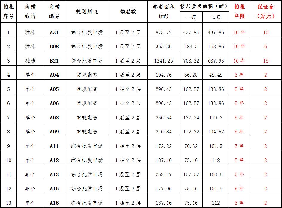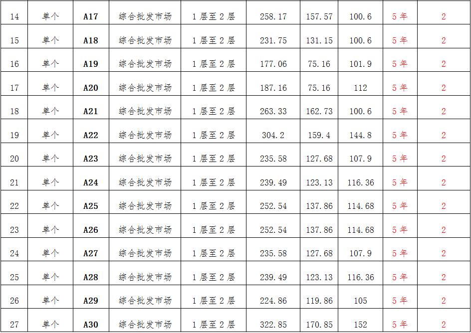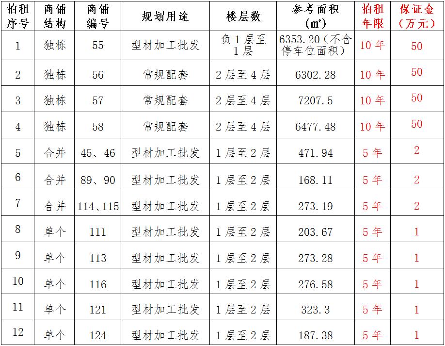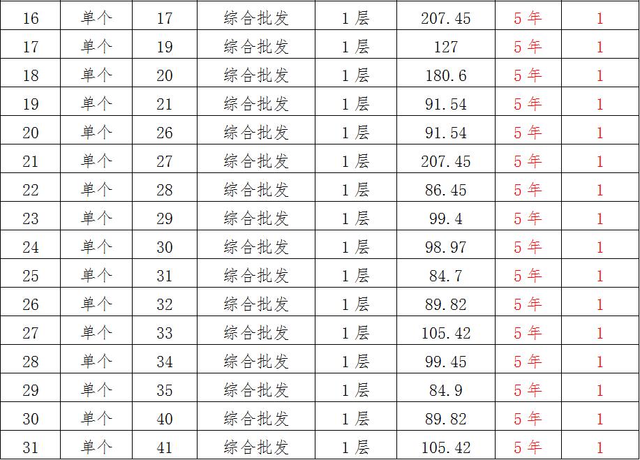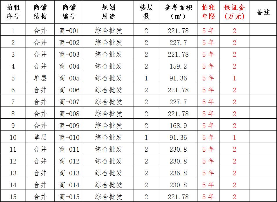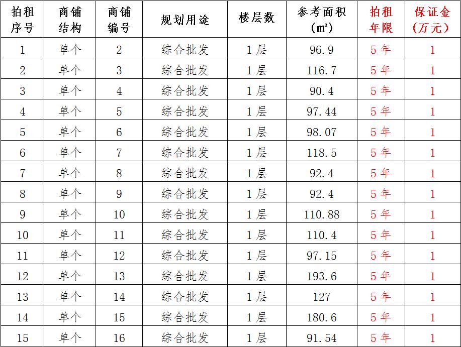 (一)拍租位于鎮(zhèn)雄縣南臺(tái)街道呢嚕坪安置點(diǎn)7棟獨(dú)立商鋪使用權(quán)。以棟為單位拍租。詳見下表: